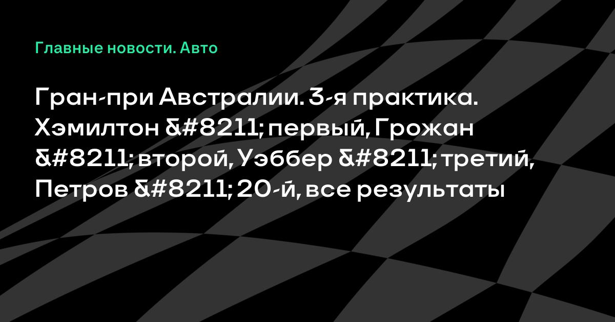 Гран-при Австралии. 3-я практика. Хэмилтон – первый, Грожан – второй, Уэббер – третий, Петров – 20-й, все результаты