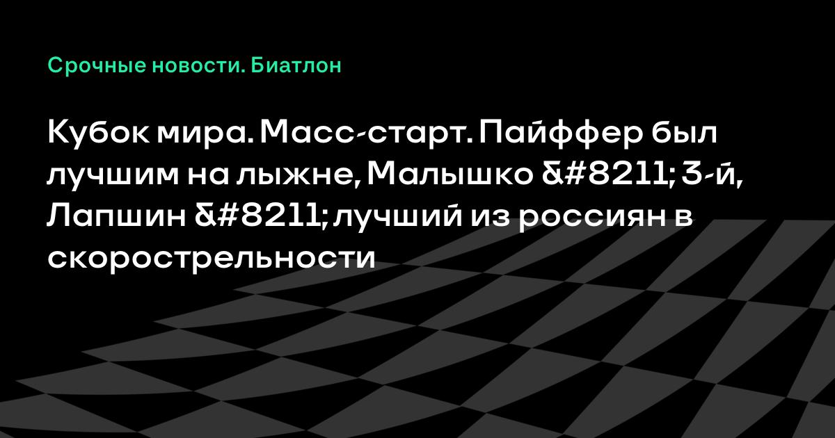 Кубок мира. Масс-старт. Пайффер был лучшим на лыжне, Малышко – 3-й, Лапшин – лучший из россиян в скорострельности