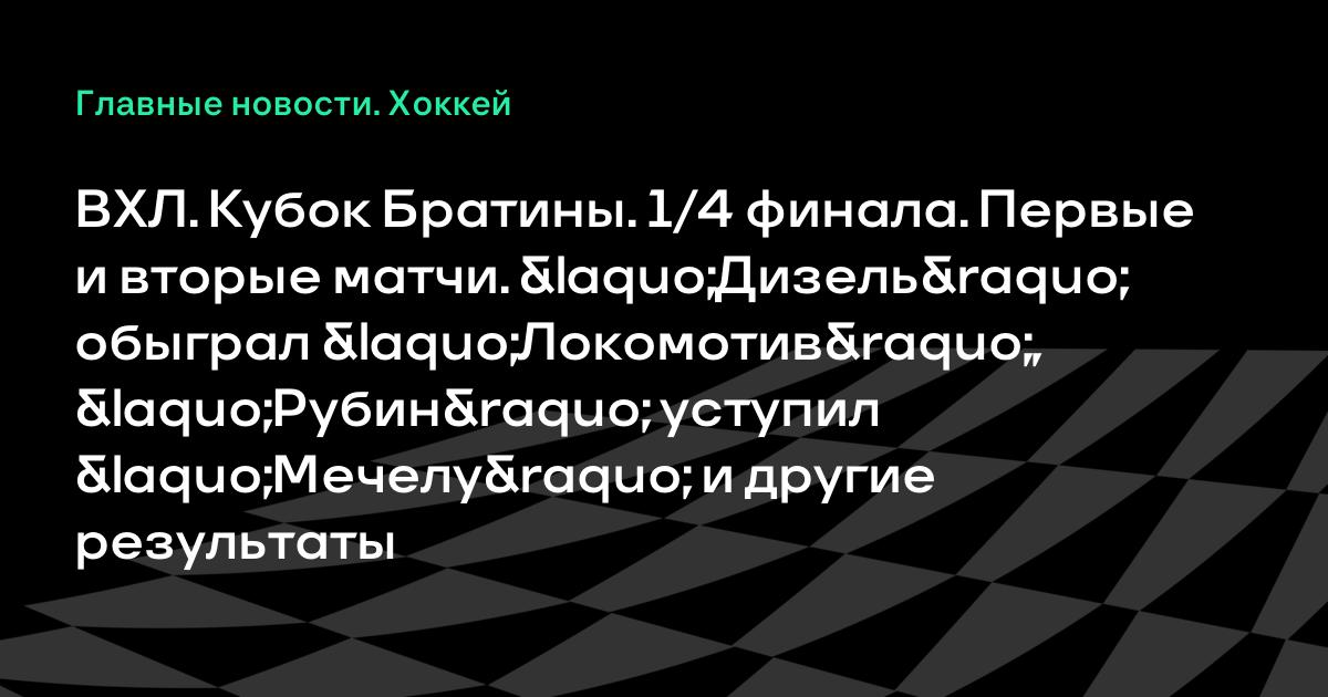 ВХЛ. Кубок Братины. 1/4 финала. Первые и вторые матчи. «Дизель» обыграл «Локомотив», «Рубин» уступил «Мечелу» и другие результаты