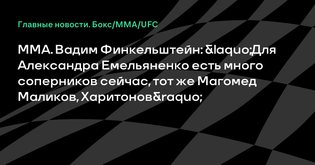 ММА. Вадим Финкельштейн: «Для Александра Емельяненко есть много соперников сейчас, тот же Магомед Маликов, Харитонов»