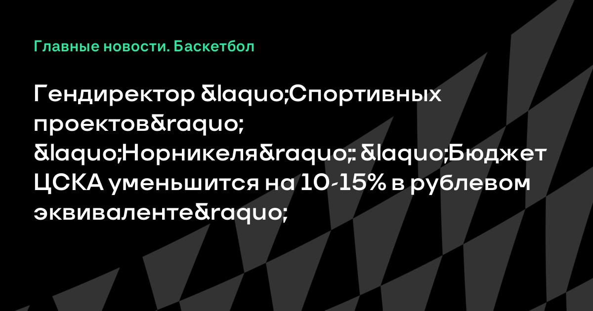Гендиректор «Спортивных проектов» «Норникеля»: «Бюджет ЦСКА уменьшится на 10-15% в рублевом эквиваленте»