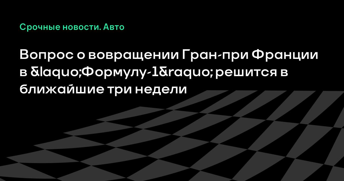 Вопрос о возвращении Гран-при Франции в календарь «Формулы-1» должен решиться в ближайшие три недели. Напомним, что последняя на данный момент гонка на территории Франции прошла на автодроме «Маньи-Кур». Сейчас же планируется, что Гран-при Франции в будущем будет проходить на автодроме «Поль-Рикар» и будет чередоваться в календаре чемпионата мира с Гран-при Бельгии.
