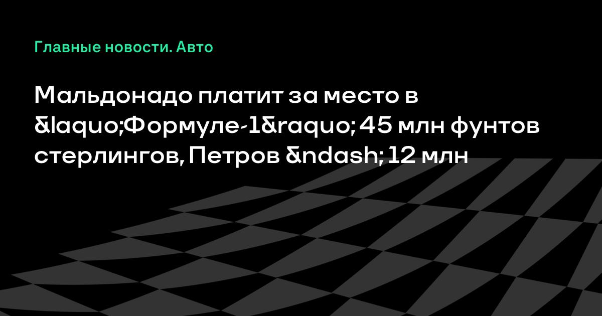 Мальдонадо платит за место в «Формуле-1» 45 млн фунтов стерлингов, Петров – 12 млн