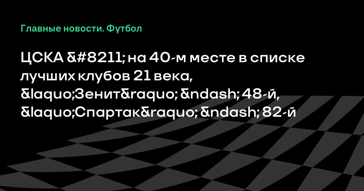ЦСКА – на 40-м месте в списке лучших клубов 21 века, «Зенит» – 48-й, «Спартак» – 82-й