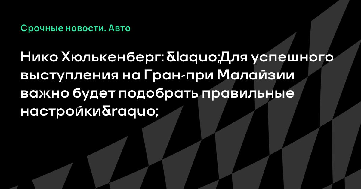 Нико Хюлькенберг: «Для успешного выступления на Гран-при Малайзии важно будет подобрать правильные настройки»