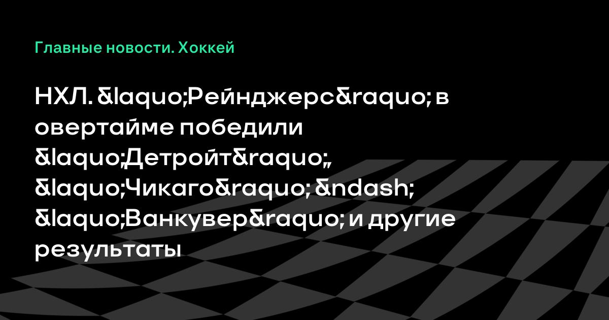 НХЛ. «Рейнджерс» в овертайме победили «Детройт», «Чикаго» – «Ванкувер» и другие результаты