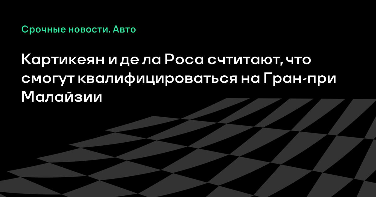 Картикеян и де ла Роса счтитают, что смогут квалифицироваться на Гран-при Малайзии