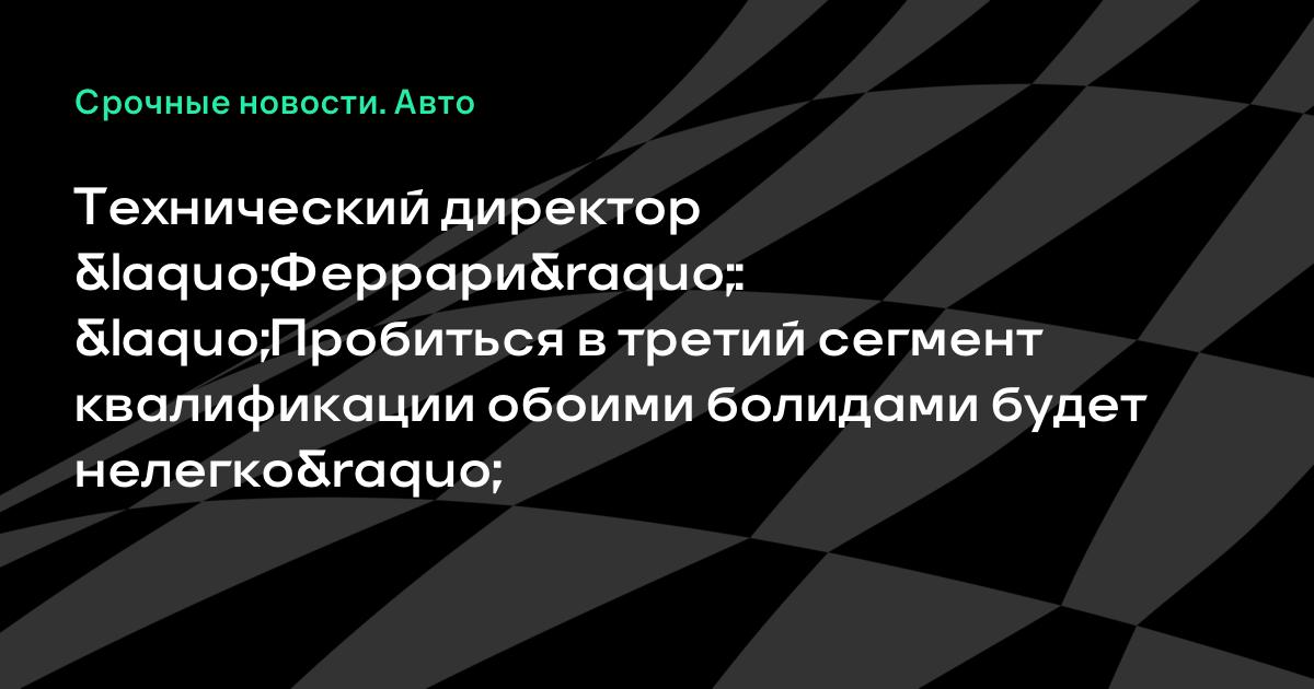 Технический директор «Феррари»: «Пробиться в третий сегмент квалификации обоими болидами будет нелегко»