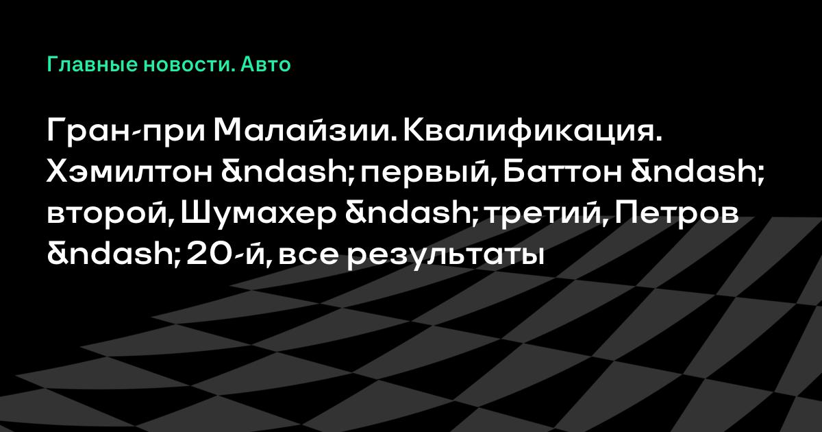 Гран-при Малайзии. Квалификация. Хэмилтон – первый, Баттон – второй, Шумахер – третий, Петров – 20-й, все результаты