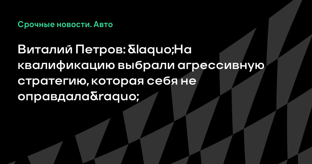 Виталий Петров: «На квалификацию выбрали агрессивную стратегию, которая себя не оправдала»