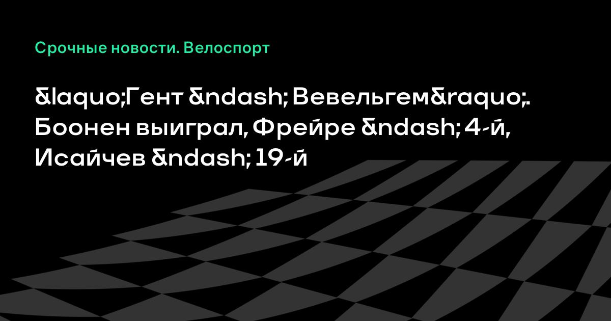 Бельгиец Том Боонен выиграл классическую однодневную гонку «Гент – Вевельгем». На финише Боонен оказался быстрейшим среди спринтеров, в том числе опередил Оскара Фрейре из «Катюши», который стал четвертым.