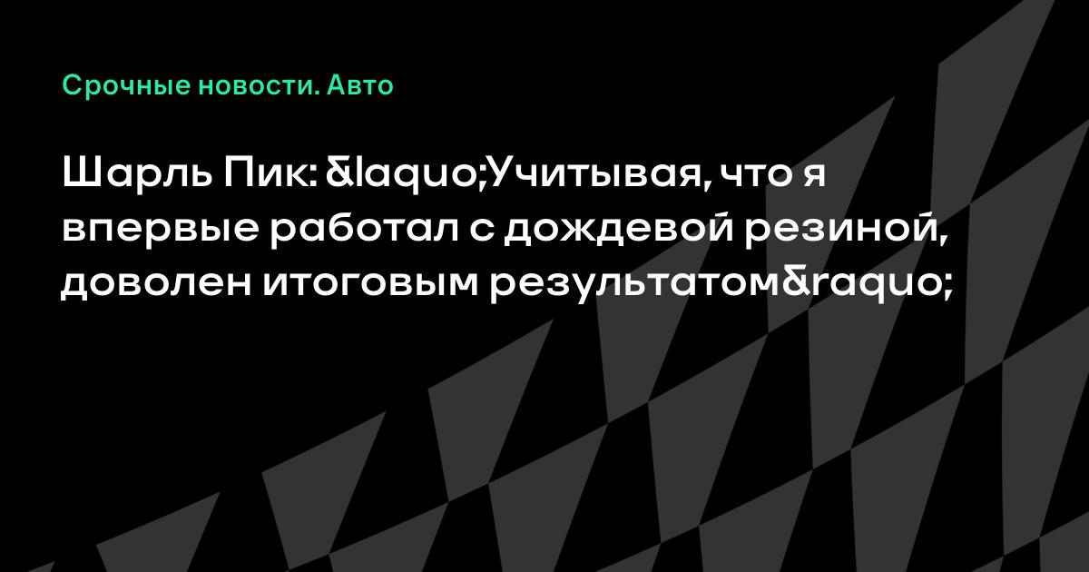 Шарль Пик: «Учитывая, что я впервые работал с дождевой резиной, доволен итоговым результатом»