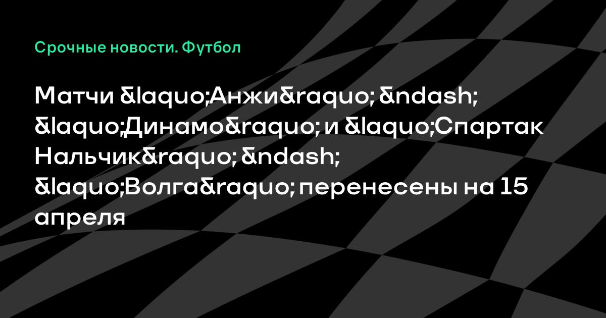 Матчи «Анжи» – «Динамо» и «Спартак Нальчик» – «Волга» перенесены на 15 апреля