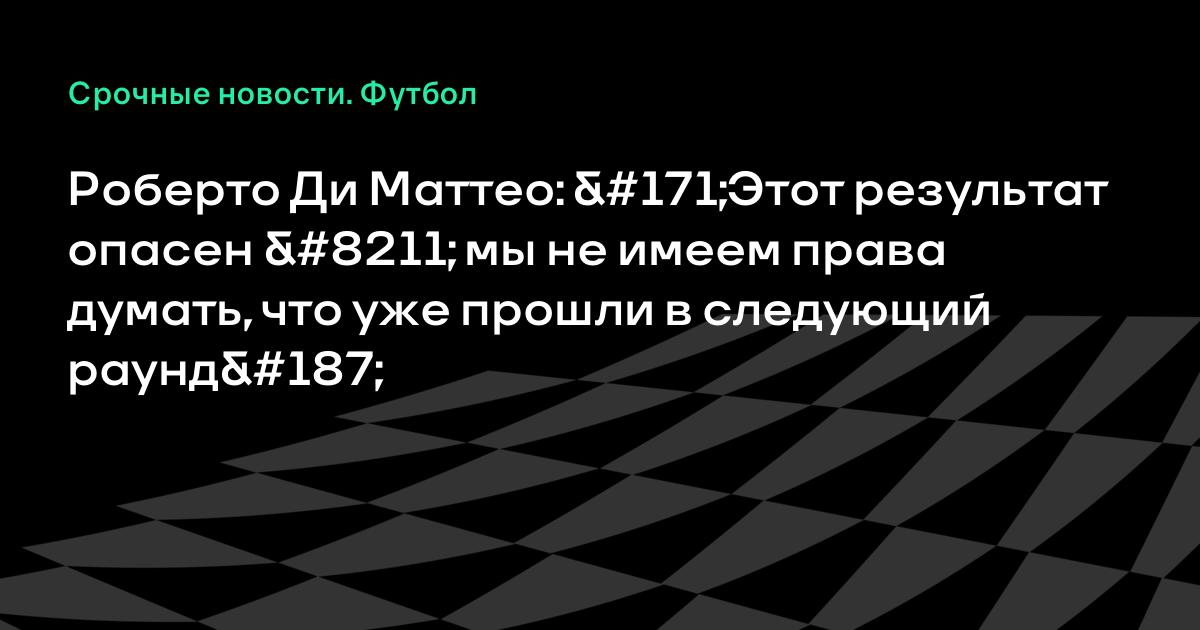 Роберто Ди Маттео: «Этот результат опасен – мы не имеем права думать, что уже прошли в следующий раунд»