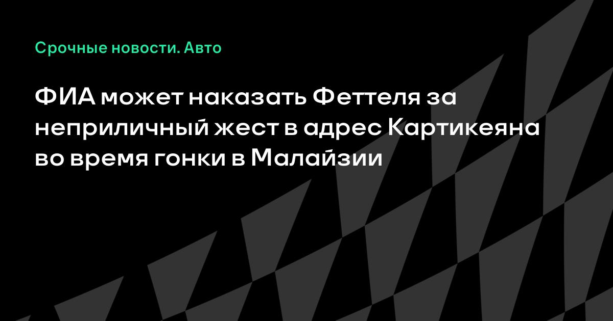 Напомним, что в гонке на «Сепанге» между Картикеяном и Феттелем произошло столкновение, когда немец обгонял индийца на круг, после чего действующий чемпион «Формулы-1» потерял шансы заработать на этом этапе очки. При этом бортовая камера на болиде Феттеля записала, что Себастьян дважды показал индийцу неприличный жест.