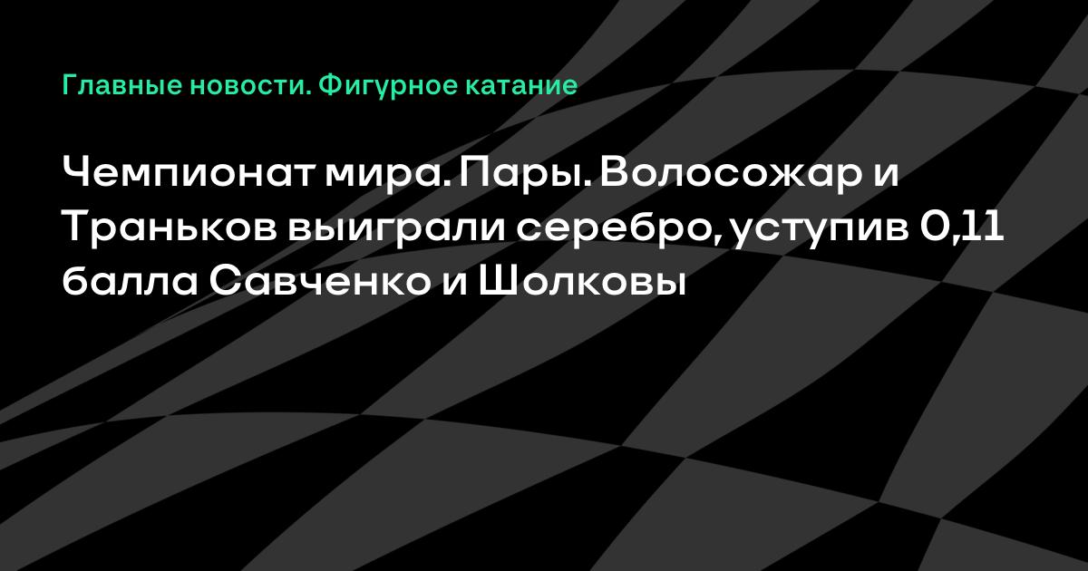 Чемпионат мира. Пары. Волосожар и Траньков выиграли серебро, уступив 0,11 балла Савченко и Шолковы