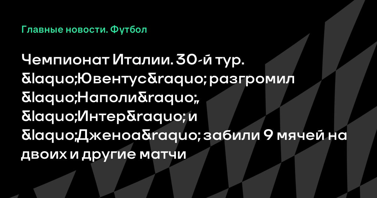 Чемпионат Италии. 30-й тур. «Ювентус» разгромил «Наполи», «Интер» и «Дженоа» забили 9 мячей на двоих и другие матчи