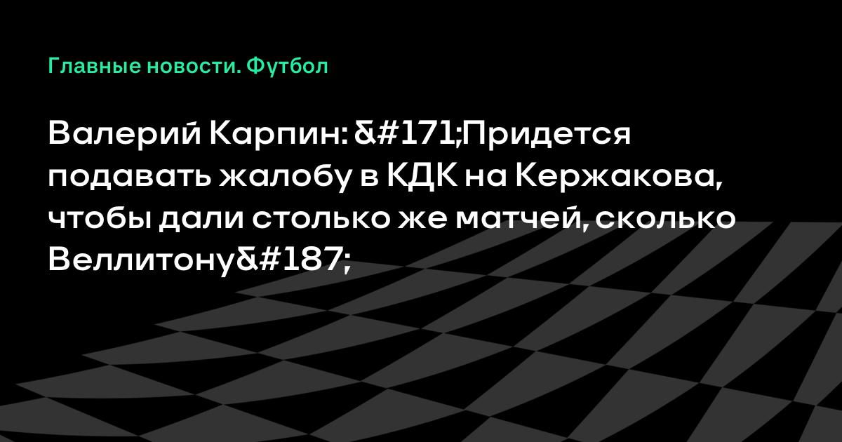 Валерий Карпин: «Придется подавать жалобу в КДК на Кержакова, чтобы дали столько же матчей, сколько Веллитону»