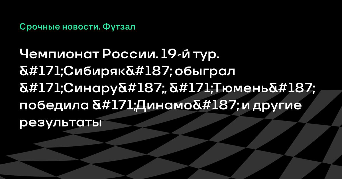 Чемпионат России. 19-й тур. «Сибиряк» обыграл «Синару», «Тюмень» победила «Динамо» и другие результаты