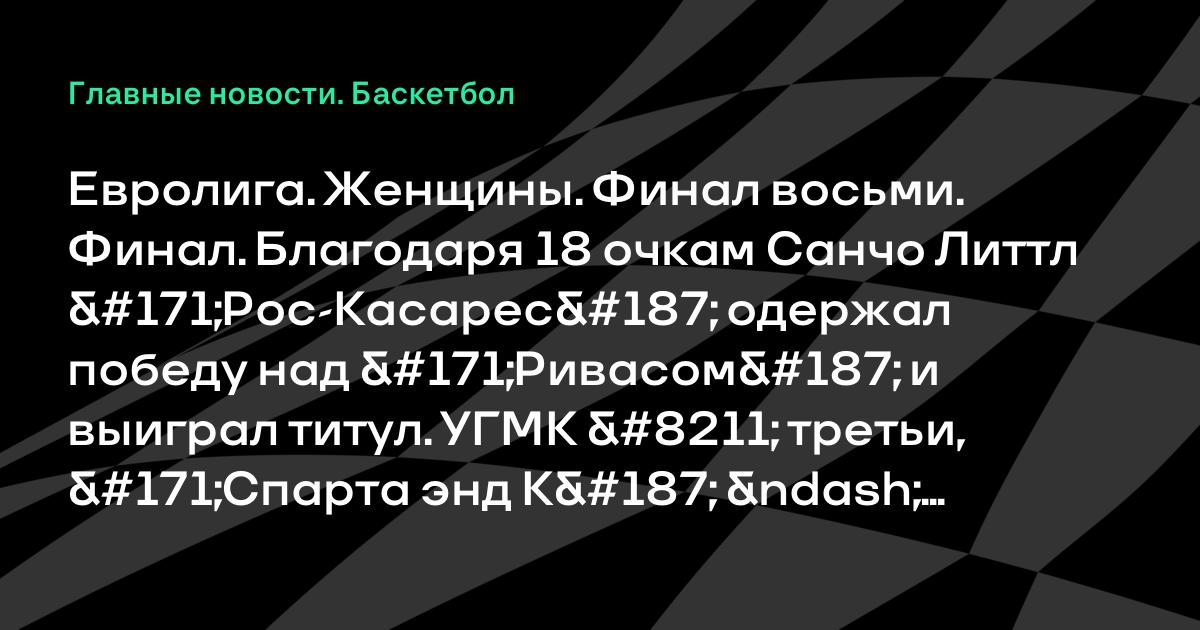 Евролига. Женщины. Финал восьми. Финал. Благодаря 18 очкам Санчо Литтл «Рос-Касарес» одержал победу над «Ривасом» и выиграл титул. УГМК – третьи, «Спарта энд К» – шестые