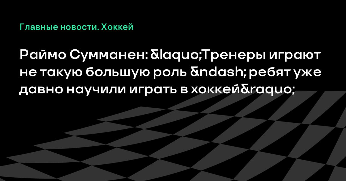 Раймо Сумманен: «Тренеры играют не такую большую роль – ребят уже давно научили играть в хоккей»