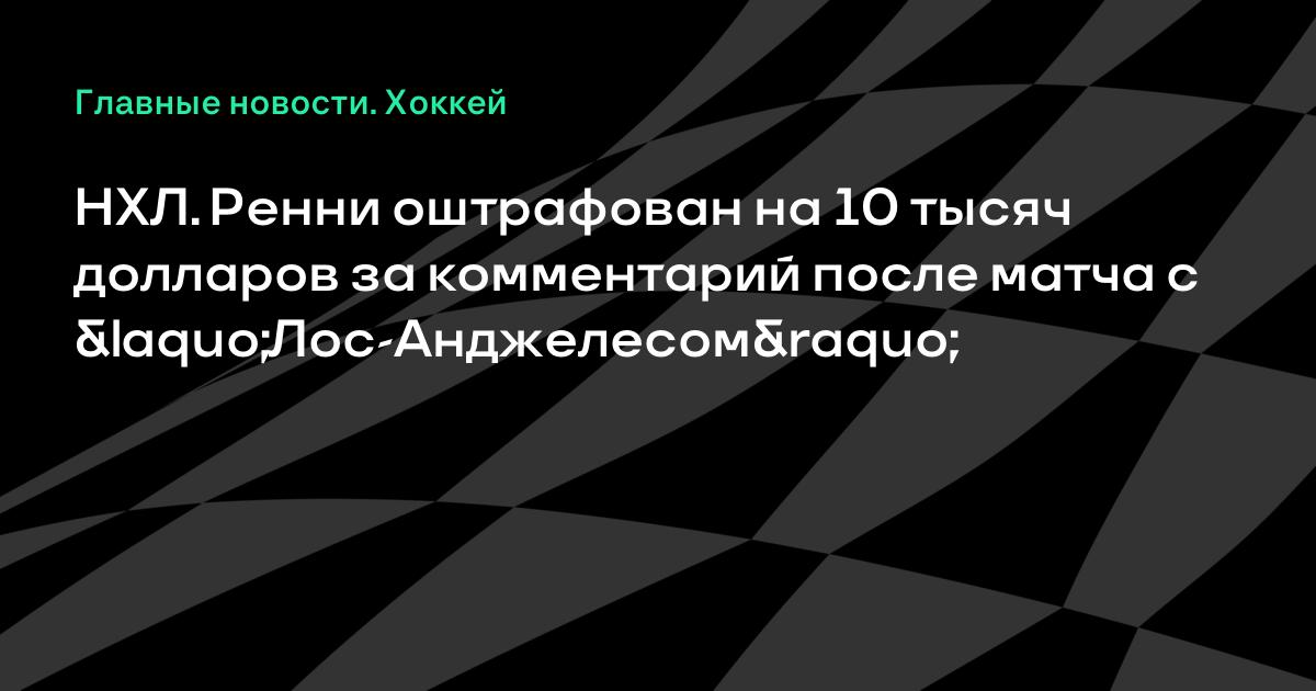 НХЛ. Ренни оштрафован на 10 тысяч долларов за комментарий после матча с «Лос-Анджелесом»