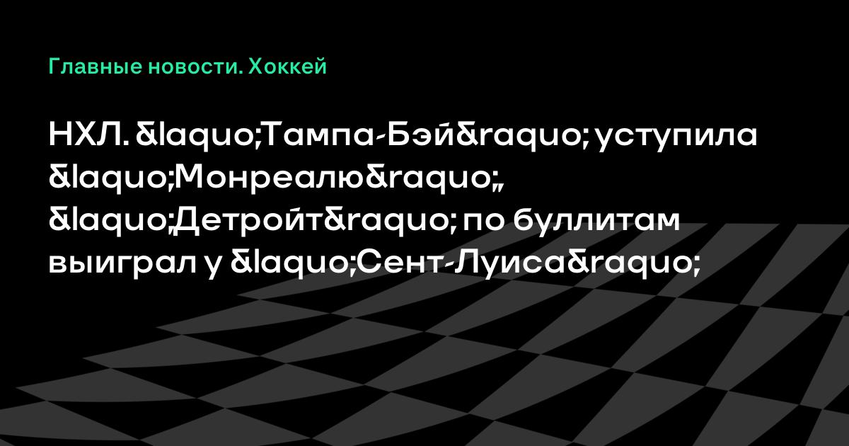 НХЛ. «Тампа-Бэй» уступила «Монреалю», «Детройт» по буллитам выиграл у «Сент-Луиса»