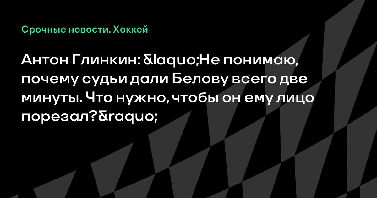 – Возможно. Повторюсь, я удивлен тем, что Белов получил всего две минуты. Удар был, хоть судья и сказал, что не было касания. Что нужно, чтобы он ему лицо порезал? Не понимаю я этого, – рассказал Глинкин «Советскому спорту».