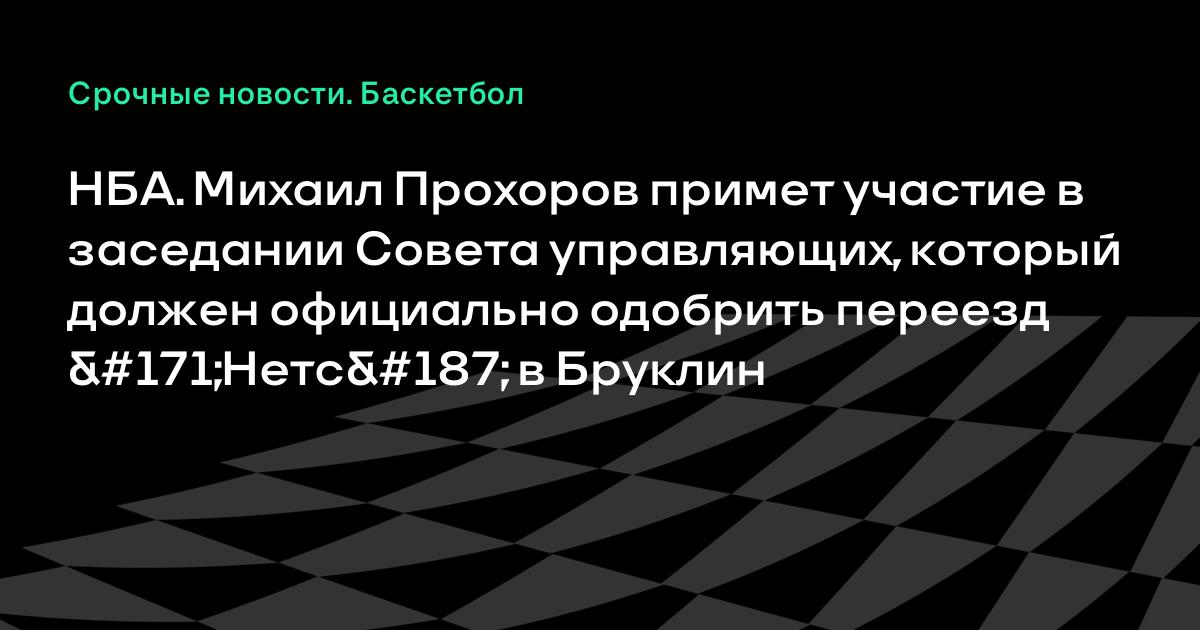 Владелец «Нетс» Михаил Прохоров примет участие в заседании Совета управляющих, который пройдет на следующей неделе. Совет должен дать официальное разрешение на переезд «Нетс» в Бруклин и одобрить смену названия. Об этом рассказал комиссионер лиги Дэвид Стерн в интервью New York Post.