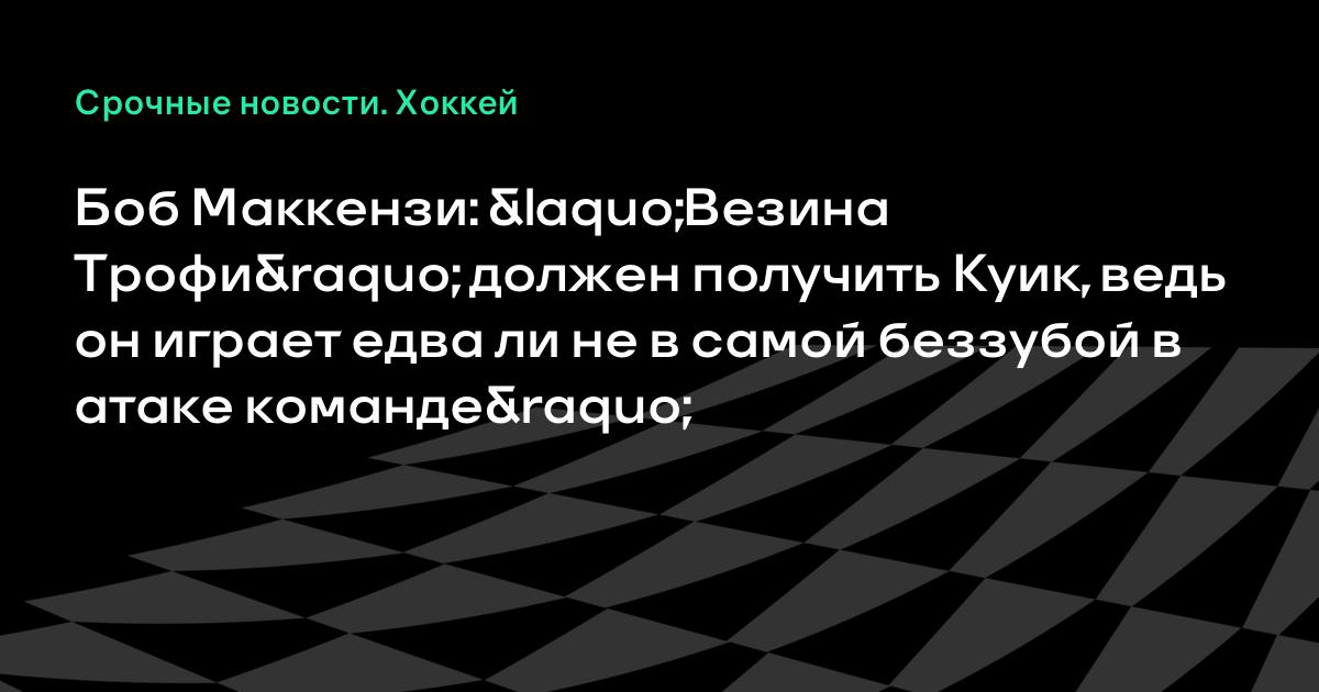 Боб Маккензи: «Везина Трофи» должен получить Куик, ведь он играет едва ли не в самой беззубой в атаке команде»