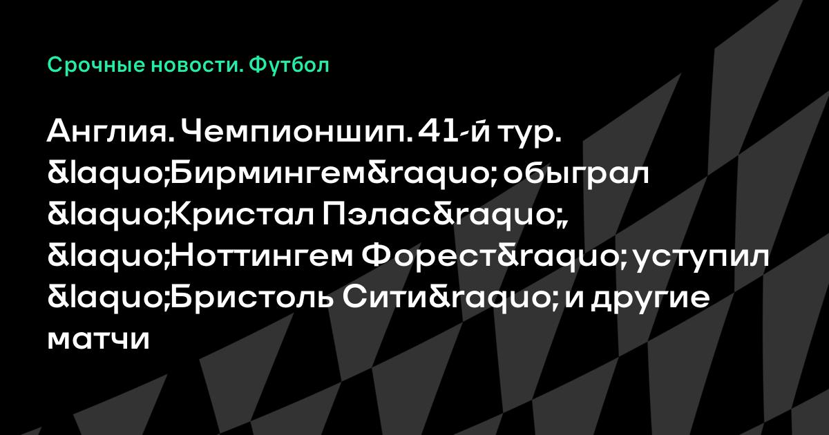 Англия. Чемпионшип. 41-й тур. «Бирмингем» обыграл «Кристал Пэлас», «Ноттингем Форест» уступил «Бристоль Сити» и другие матчи