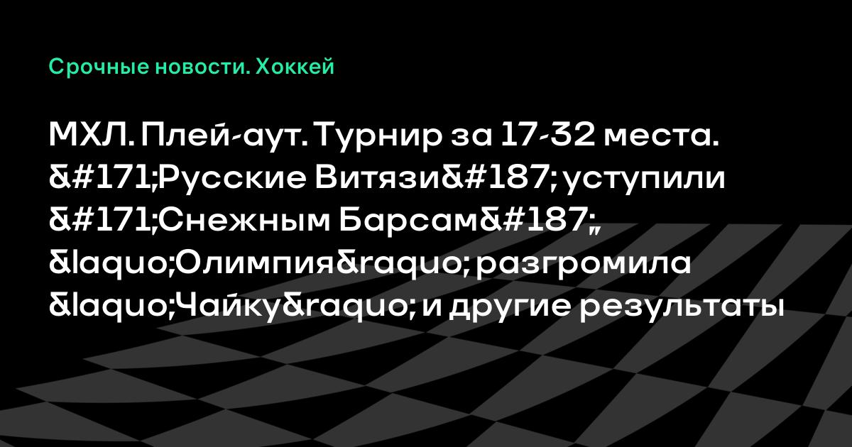 МХЛ. Плей-аут. Турнир за 17-32 места. «Русские Витязи» уступили «Снежным Барсам», «Олимпия» разгромила «Чайку» и другие результаты