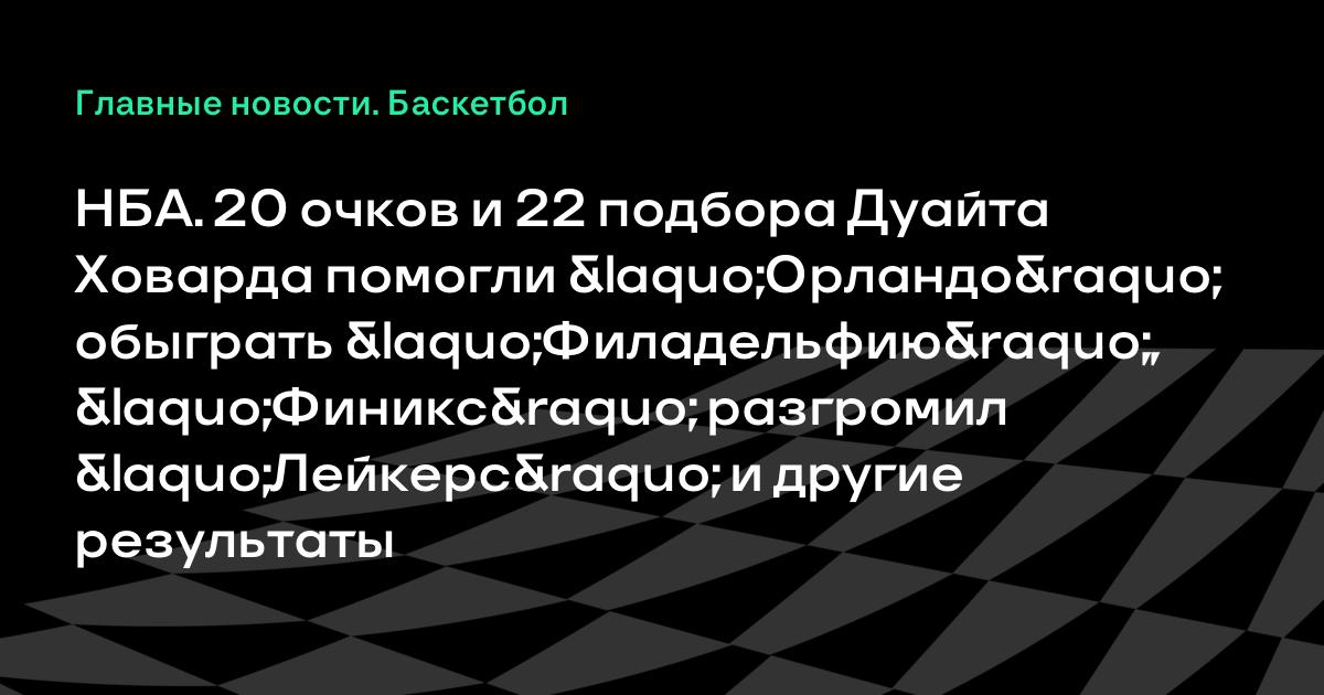 НБА. 20 очков и 22 подбора Дуайта Ховарда помогли «Орландо» обыграть «Филадельфию», «Финикс» разгромил «Лейкерс» и другие результаты