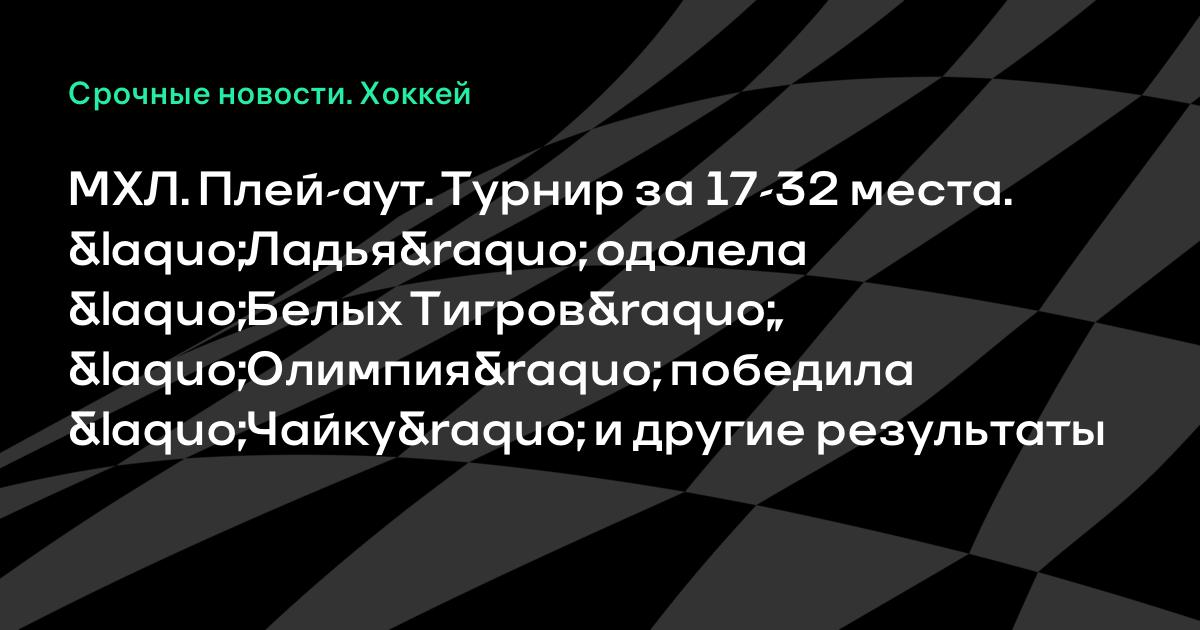МХЛ. Плей-аут. Турнир за 17-32 места. «Ладья» одолела «Белых Тигров», «Олимпия» победила «Чайку» и другие результаты