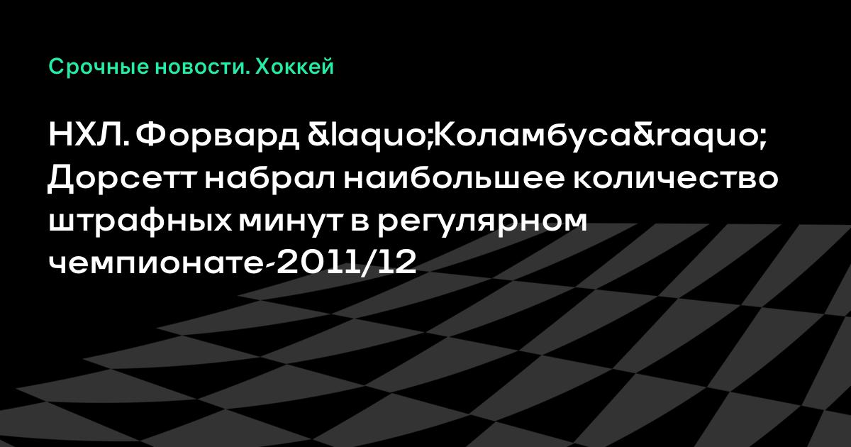 Наибольшее количество штрафных минут в регулярном чемпионате-2011/12 набрал форвард «Колорадо» Дерек Дорсетт. На его счету – 235 минут штрафа, сообщает официальный сайт НХЛ.