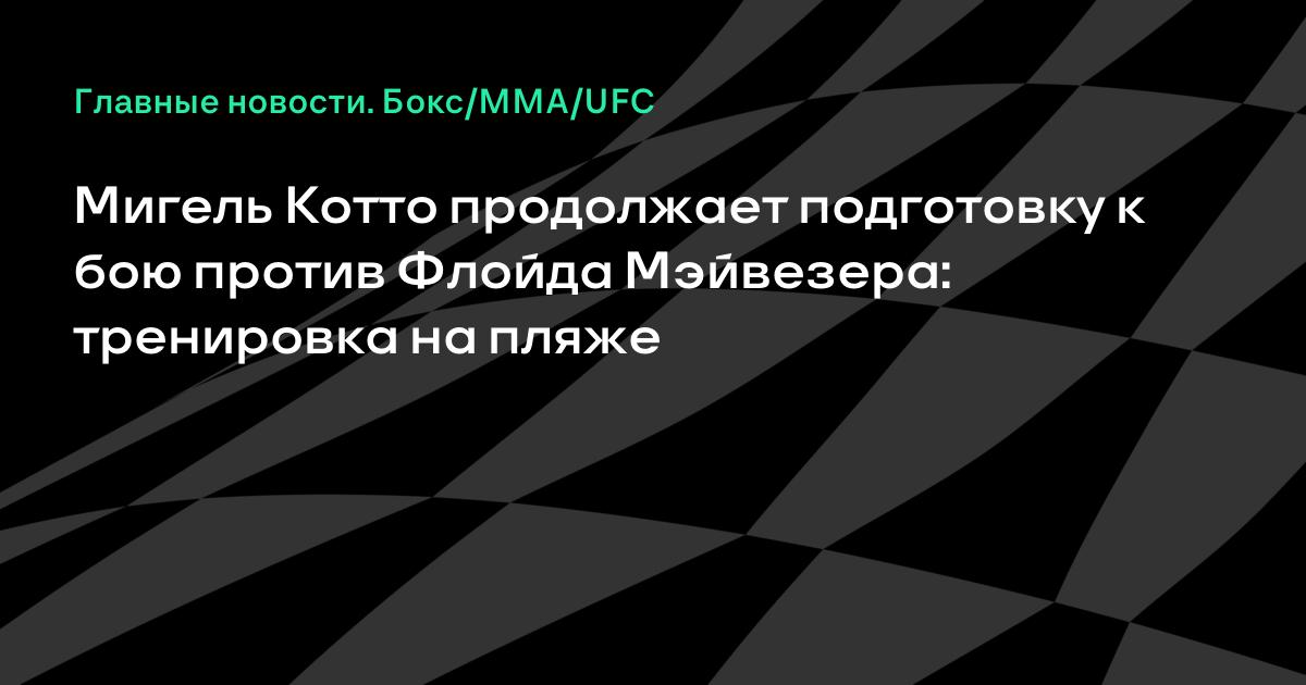 8 апреля 2012, 20:12 Мигель Котто продолжает подготовку к бою против Флойда Мэйвезера: тренировка на пляже Чемпион мира Мигель Котто продолжает подготовку к предстоящему 5 мая бою против Флойда Мэйвезера. ФОТО ВИДЕО Бокс/MMA/UFC Флойд Мейвезер-младший Мигель Анхель Котто фото