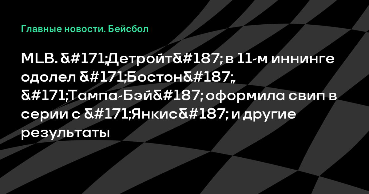 MLB. «Детройт» в 11-м иннинге одолел «Бостон», «Тампа-Бэй» оформила свип в серии с «Янкис» и другие результаты