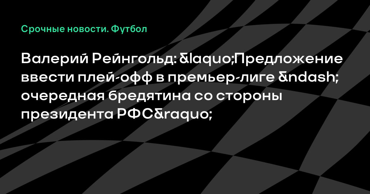 Футбол, это не хоккей, о каком плей-офф идет речь? Это чушь, которую ни один понимающий человек не поддержит. По такой формуле играется Кубок России, но никак не регулярное первенство. Так что я отношусь к такого рода предложению, крайне отрицательно, – цитирует Рейнгольда Rusfootball.info.