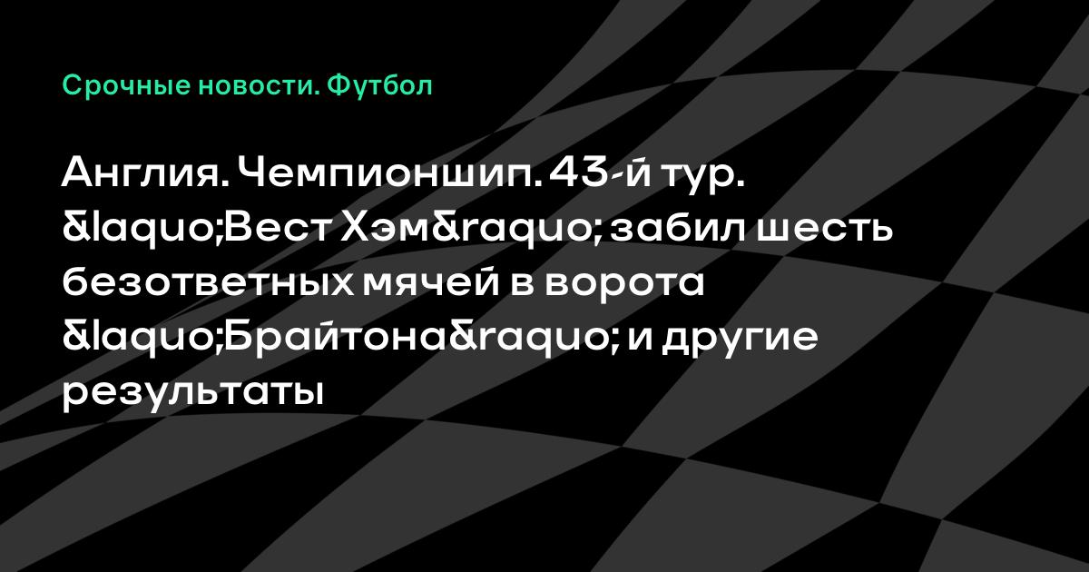 Англия. Чемпионшип. 43-й тур. «Вест Хэм» забил шесть безответных мячей в ворота «Брайтона» и другие результаты