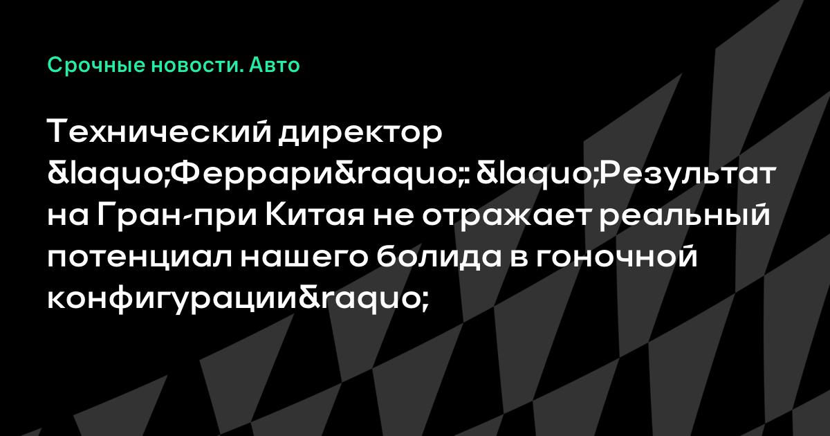 Технический директор «Феррари»: «Результат на Гран-при Китая не отражает реальный потенциал нашего болида в гоночной конфигурации»