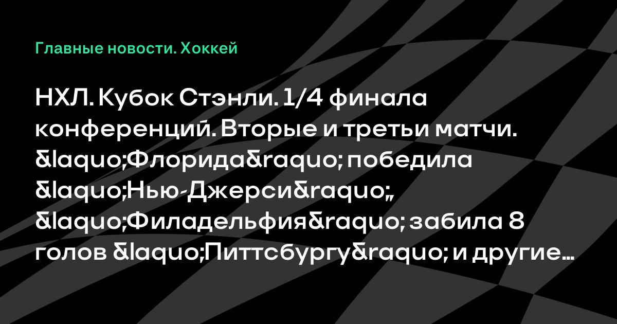 НХЛ. Кубок Стэнли. 1/4 финала конференций. Вторые и третьи матчи. «Флорида» победила «Нью-Джерси», «Филадельфия» забила 8 голов «Питтсбургу» и другие результаты