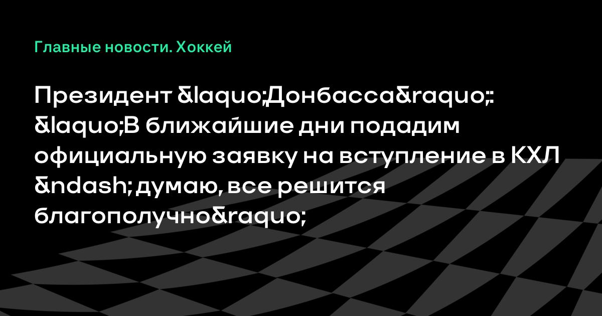 Президент «Донбасса»: «В ближайшие дни подадим официальную заявку на вступление в КХЛ – думаю, все решится благополучно»