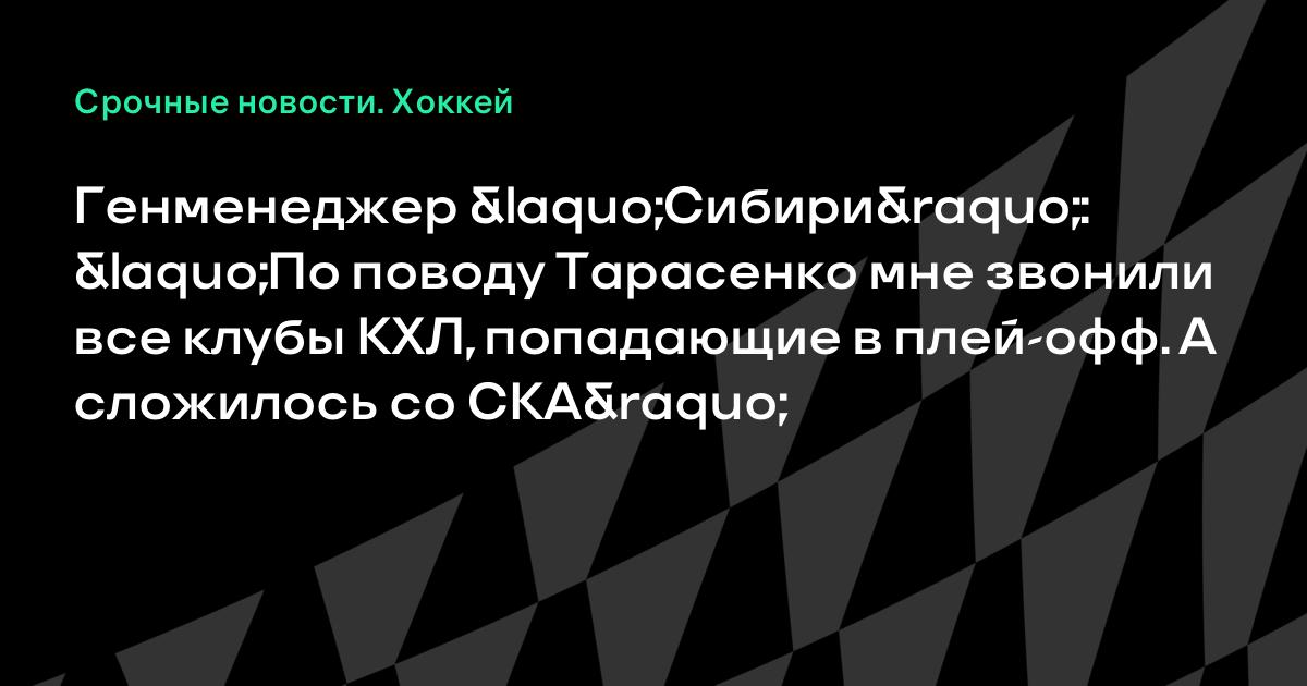 Генменеджер «Сибири»: «По поводу Тарасенко мне звонили все клубы КХЛ, попадающие в плей-офф. А сложилось со СКА»