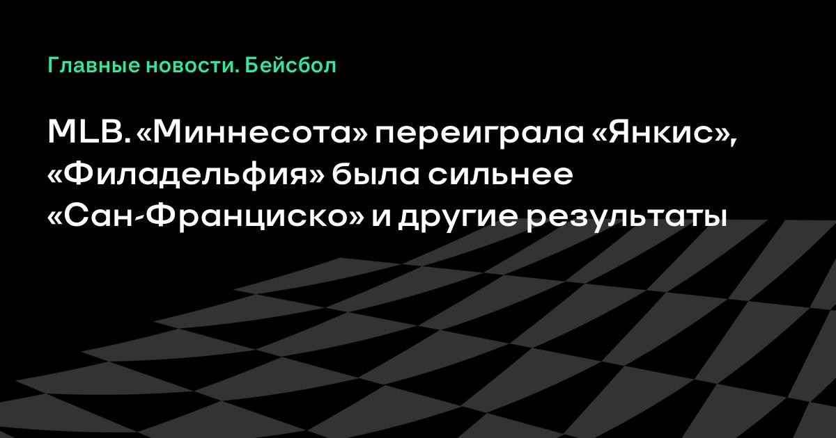 MLB. «Миннесота» переиграла «Янкис», «Филадельфия» была сильнее «Сан-Франциско» и другие результаты