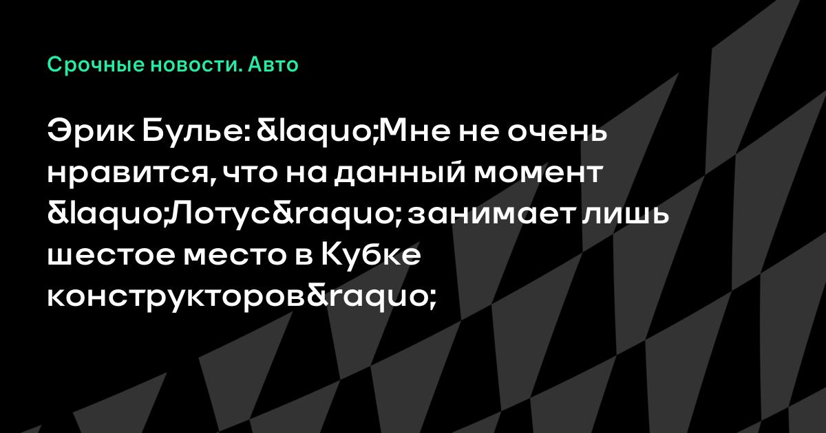 Эрик Булье: «Мне не очень нравится, что на данный момент «Лотус» занимает лишь шестое место в Кубке конструкторов»
