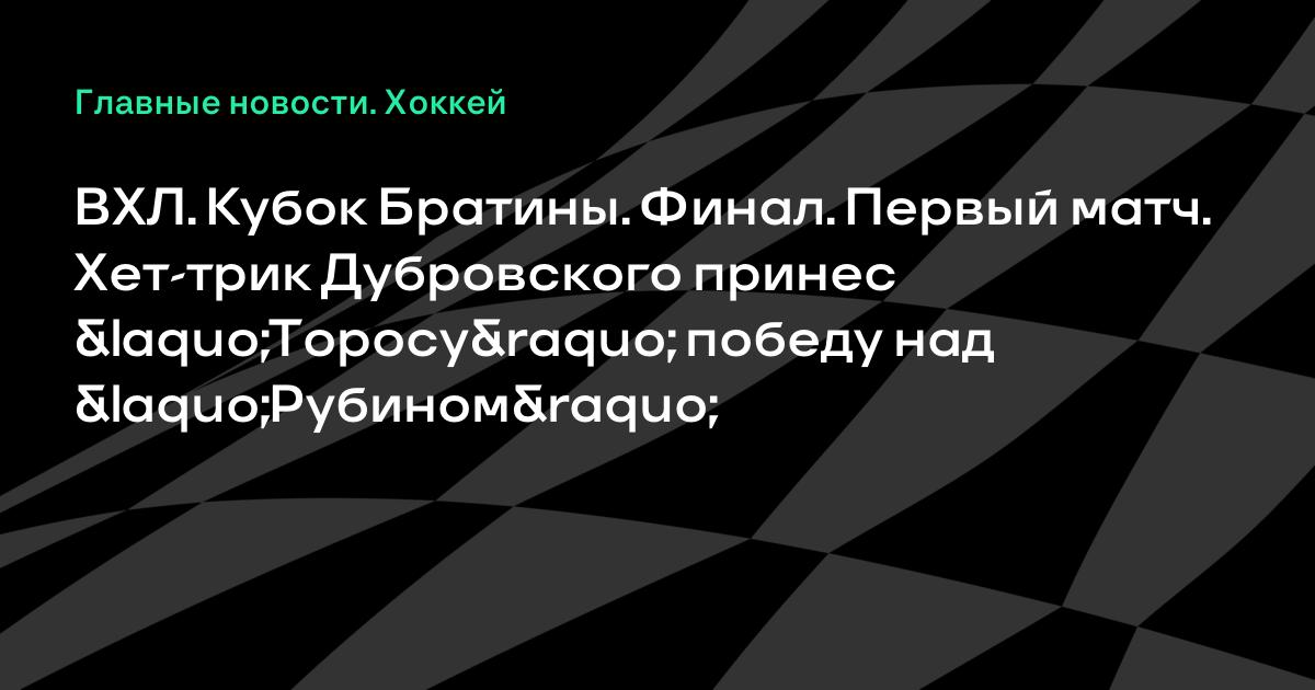 В первом финальном матче Кубка Братины в Тюмени «Рубин» уступил «Торосу» (2:3 ОТ). В составе гостей все три шайбы забросил нападающий Егор Дубровский.