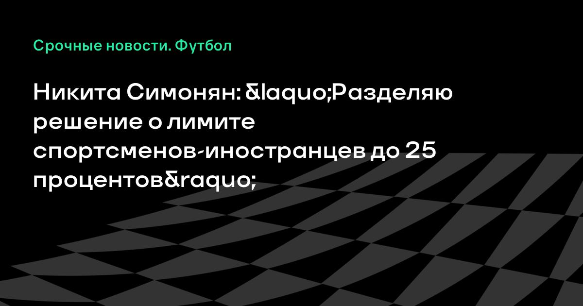 Никита Симонян: «Разделяю решение о лимите спортсменов-иностранцев до 25 процентов»