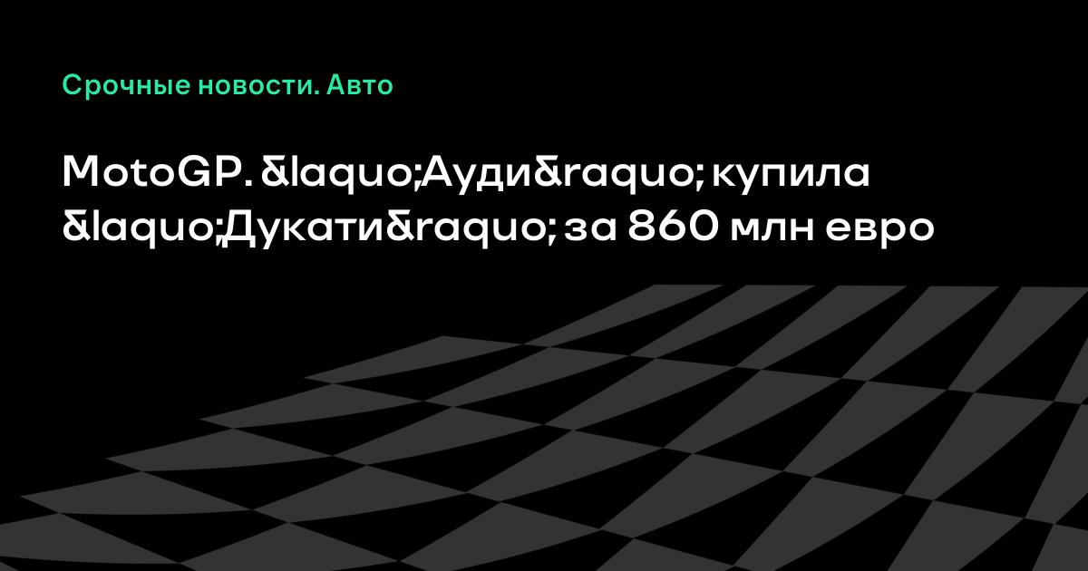 Немецкий автопроизводитель, компания «Ауди», официально объявила о покупке компании-производителя мотоциклов, «Дукати». Сумма сделки не называется, однако по некоторым данным, «Дукати» обошлась автогиганту в 860 млн евро, сообщает Reuters. Напомним, что «Дукати» участвует в чемпионатах MotoGP и «Мировой Супербайк».