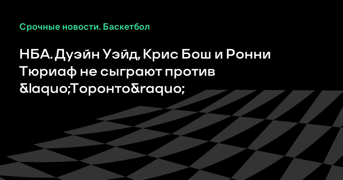 НБА. Дуэйн Уэйд, Крис Бош и Ронни Тюриаф не сыграют против «Торонто»