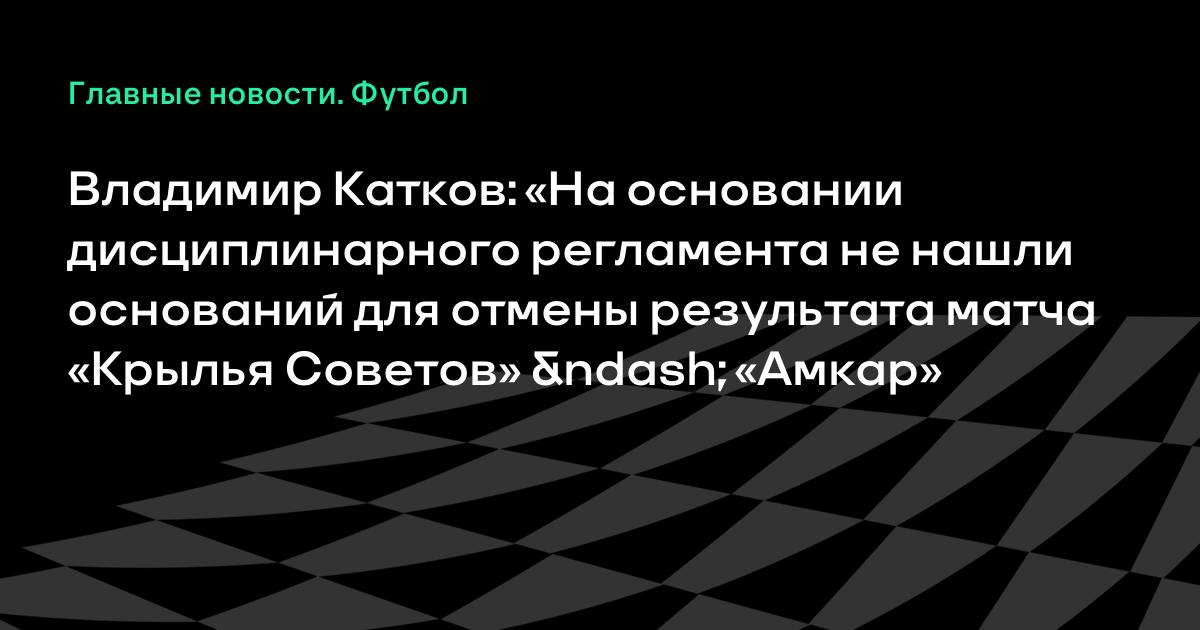 Владимир Катков: «На основании дисциплинарного регламента не нашли оснований для отмены результата матча «Крылья Советов» – «Амкар»